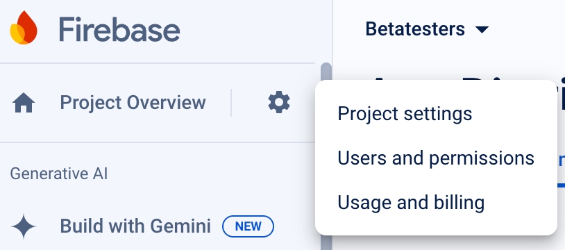 Go to your Firebase Projects Page by navigating to the Firebase Console.