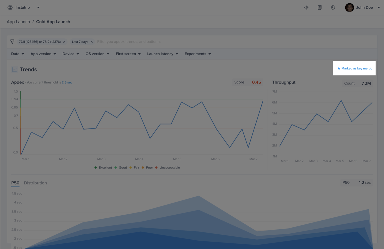 For APM issues (App Launches, Flows, Networks, UI Hangs, Screen loading), which you can configure each trace as either a Key Metric or Non-Key Metric: