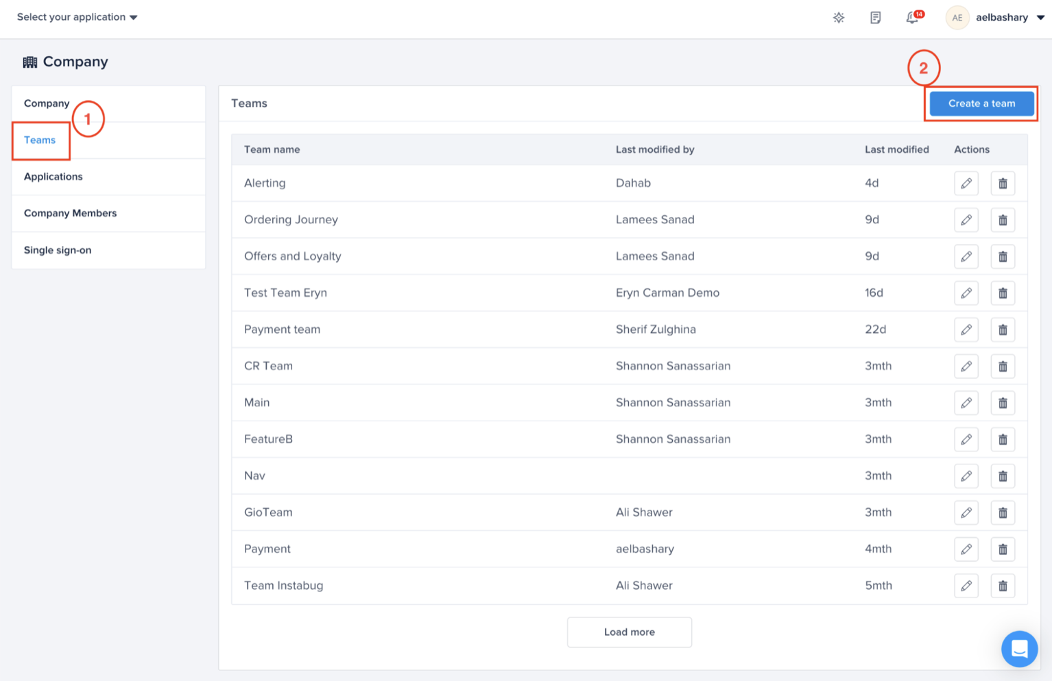 To create a team, you will go through “Account management” (on the organizational level) at the top right corner of the dashboard