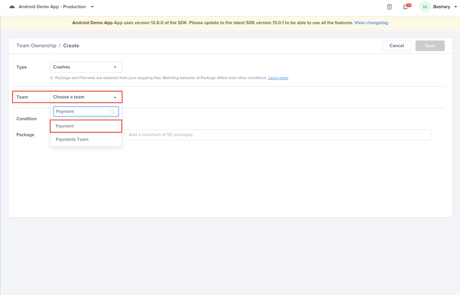 And now defining the Payment team that is responsible for Crashes