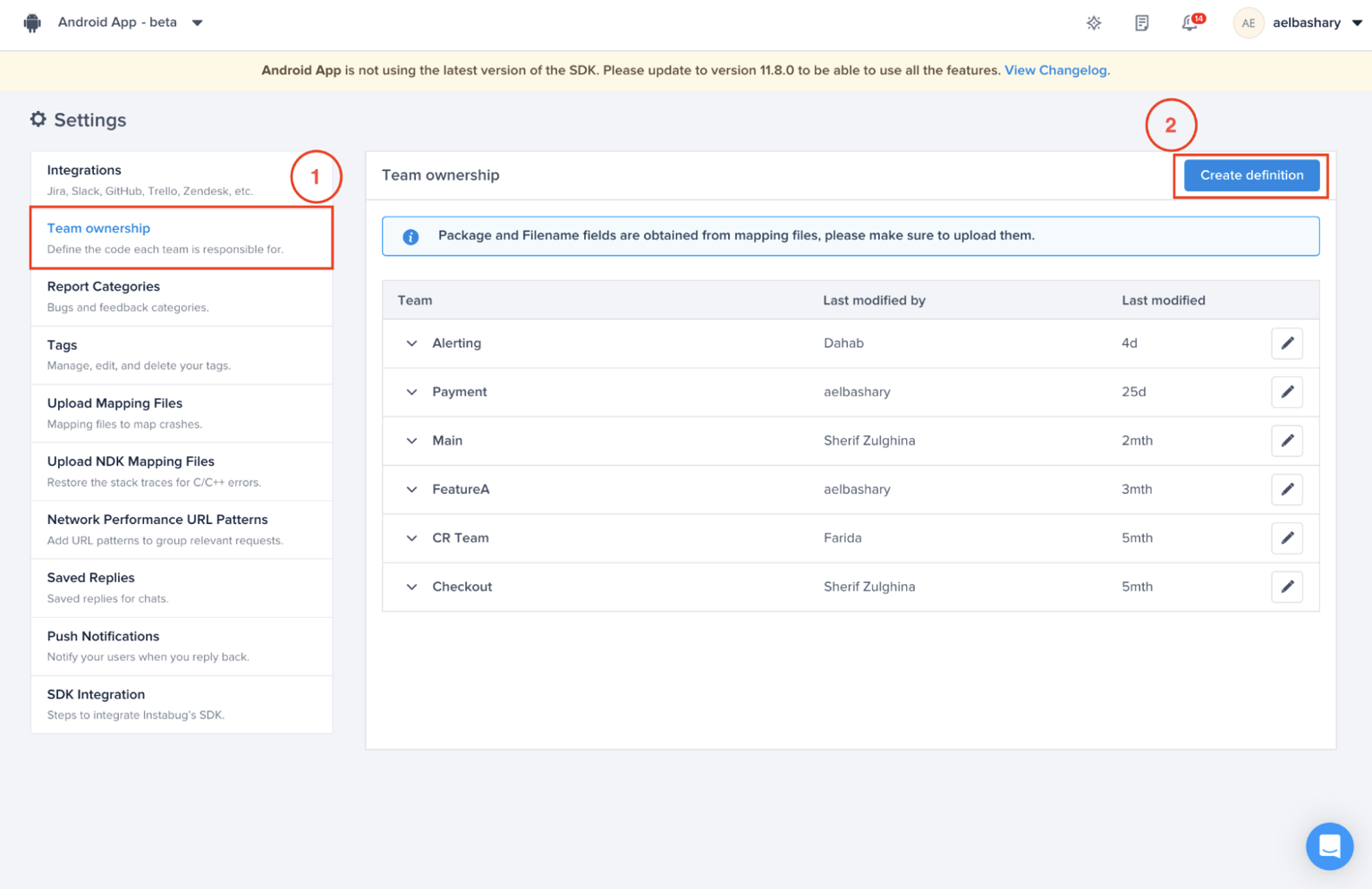 To set up team ownership in the Luciq dashboard, you will need to go through a couple of steps. Team ownership will help ensure every crash and bug gets assigned to the corresponding team. Assignment can be done either manually or automatically. These steps will ensure you create the best possible team definitions. It will enable you to then prioritize issues related to your team and get alerted about them. These are the quick few steps needed to complete team ownership on the dashboard