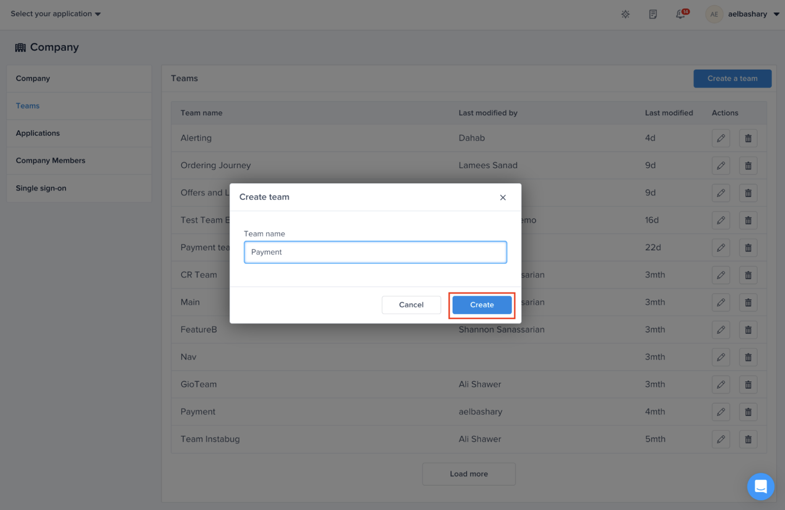 Choose the team that you created. For example, “Payment” Team