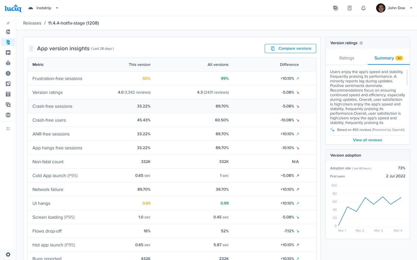 Monitor App Ratings and Reviews for each Release
