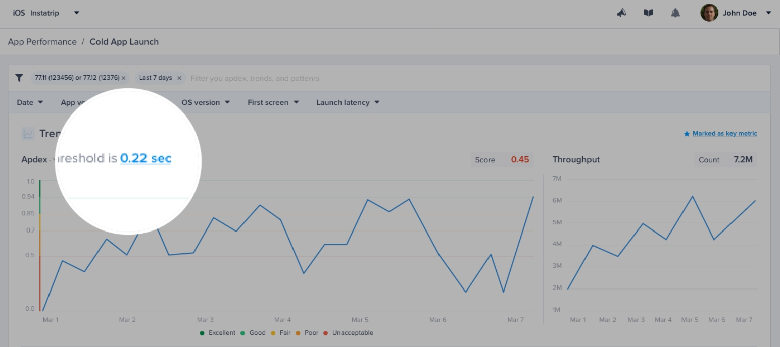 This page covers Luciq's app launch definition, its APDEX calculation, how to set your custom target, and all the details you need to know about the app launch metric on your iOS apps.