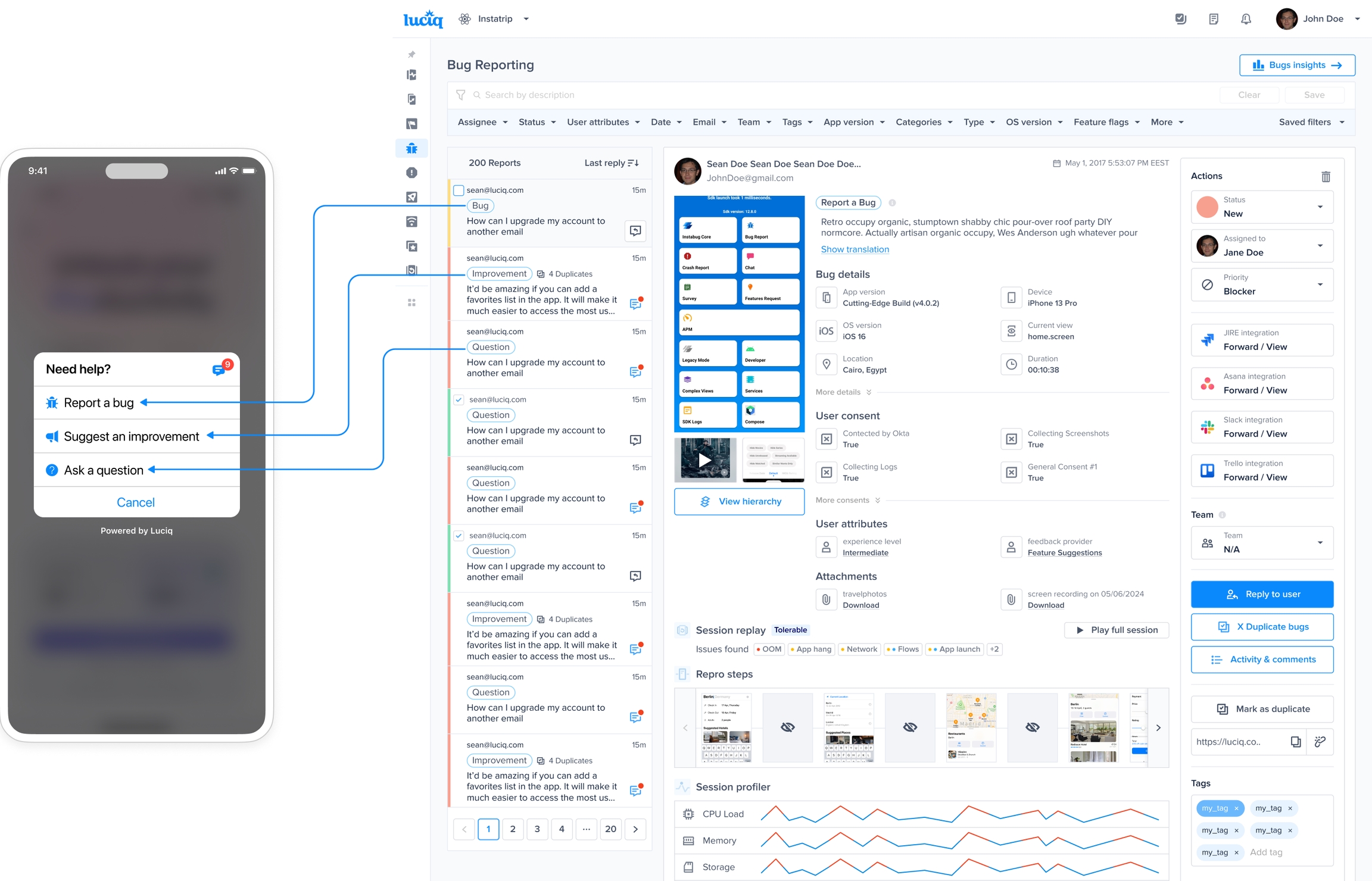 This page covers the content found in the reports sent to the bugs page of your dashboard and relevant APIs for your iOS apps.