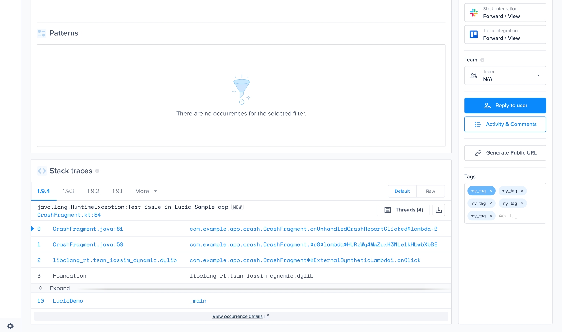 When using Luciq Crash Reporting, each crash report reaches your dashboard with all the information you need to resolve it.