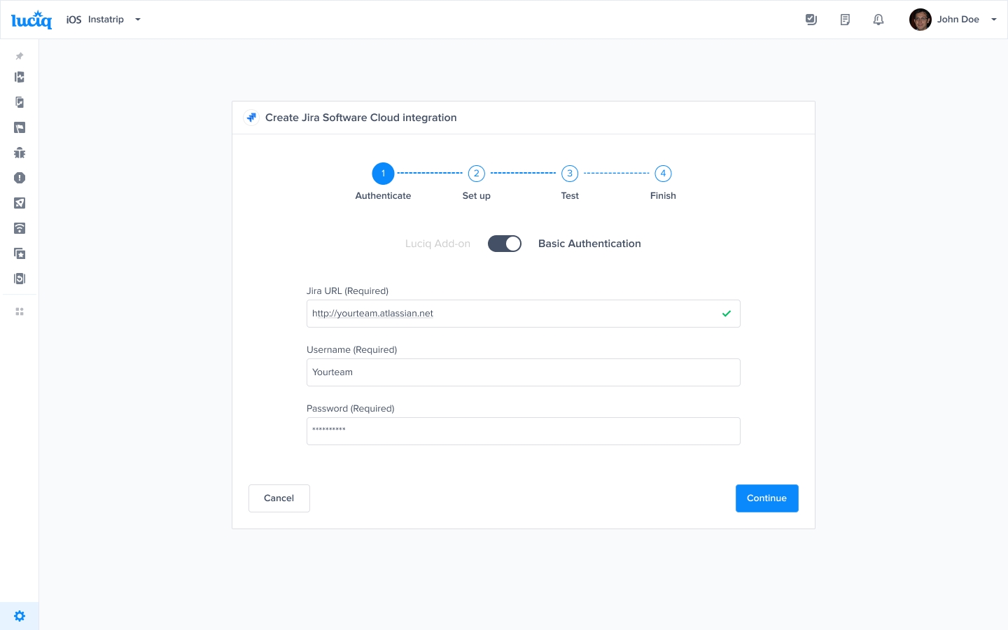 Enter Jira credentials