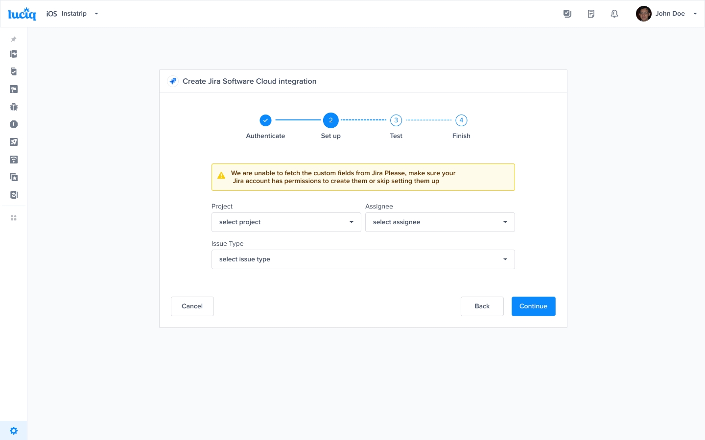 This section covers how to map Jira custom fields to fields from the Luciq dashboard.
