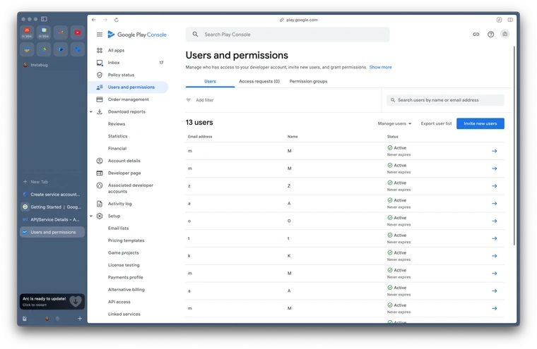 Go to the Users & Permissions page on the Google Play Console.