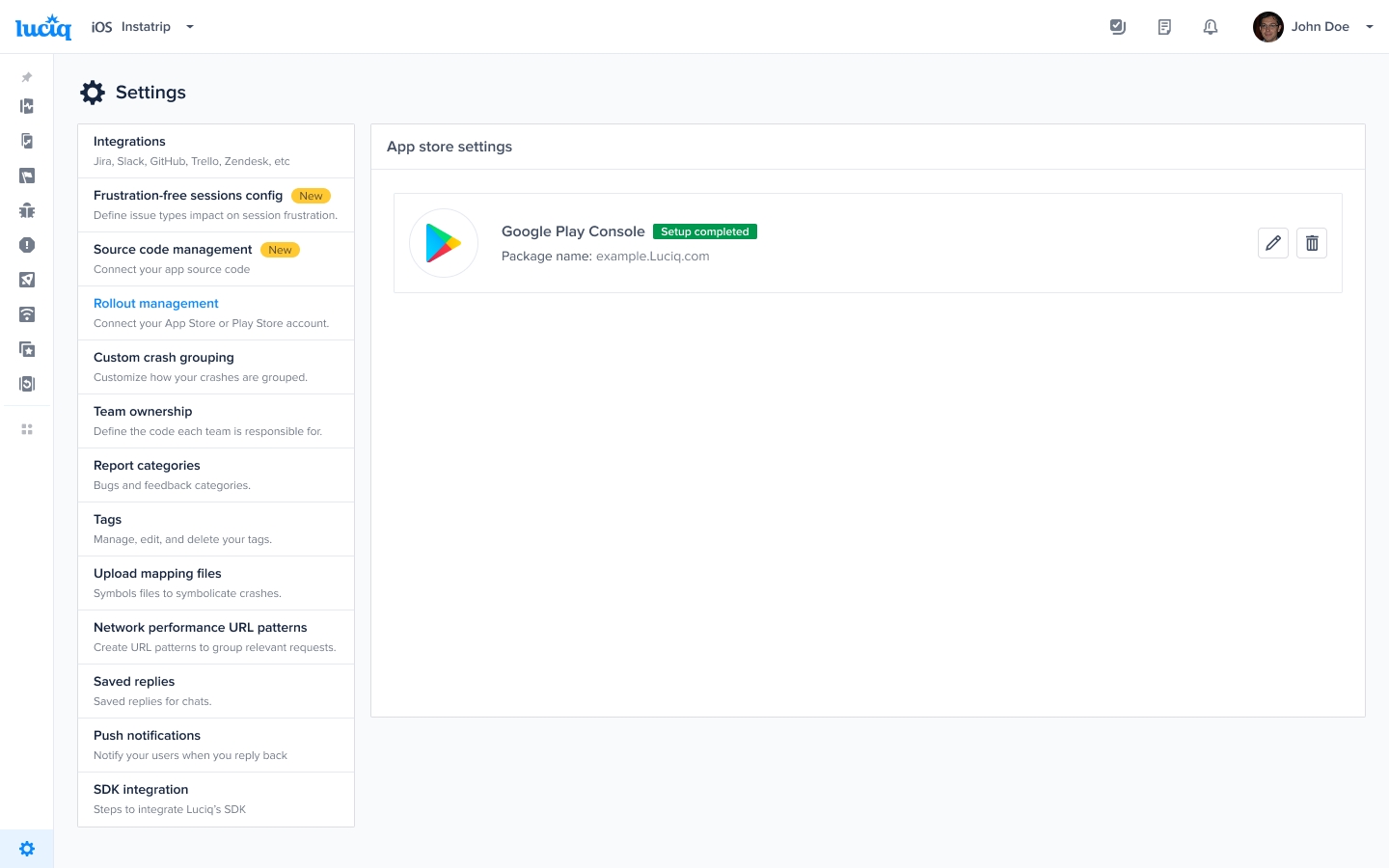 You can also delete the package name associated with the Luciq dashboard, and we won’t be able to fetch any details from the store for this package name.