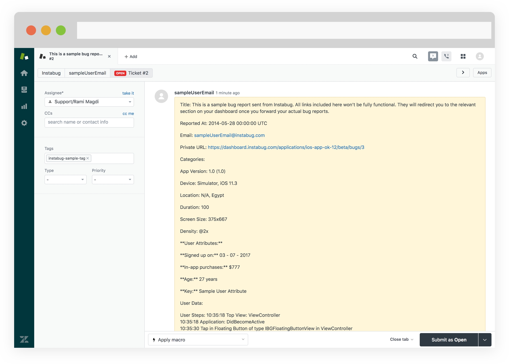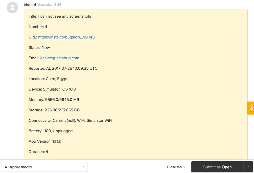 We know that you care about your customers' engagement a lot. If you are using Zendesk to handle the process, you can forward all your crash reports, bug reports and chats to your Zendesk account.