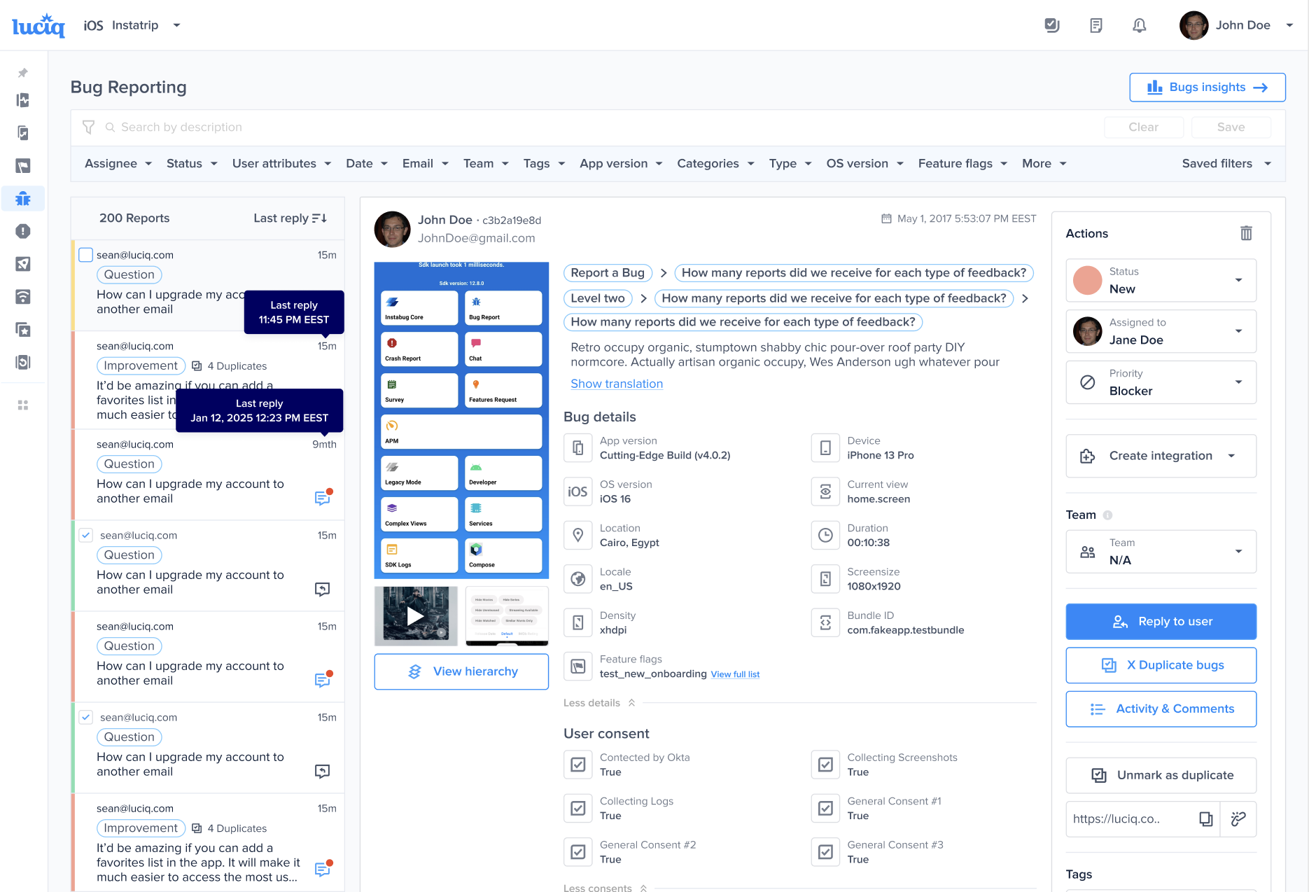 With each report, you receive a plethora of details that will help you fix bugs and get more context about the comments you receive. Throughout this page, you will learn about all the information that comes in these reports, as well as any relevant APIs that you can use to customize the data that you receive, including: