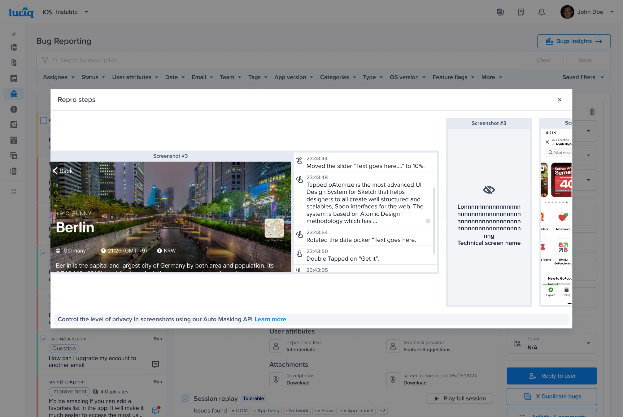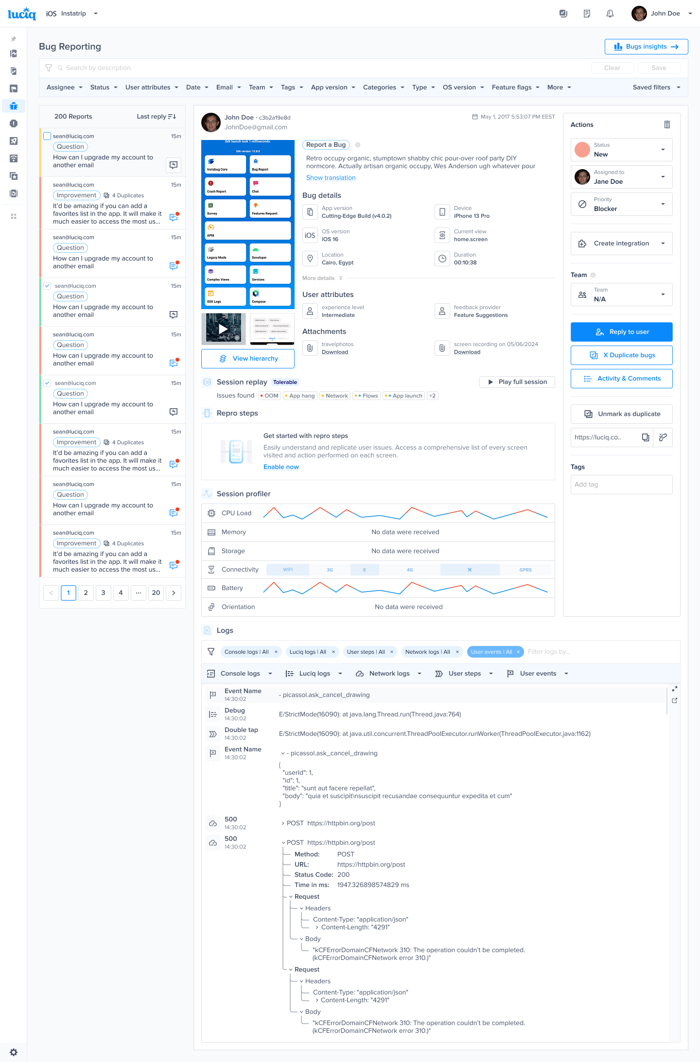 Luciq Logs: Logs with different verbosity levels that you can add manually.