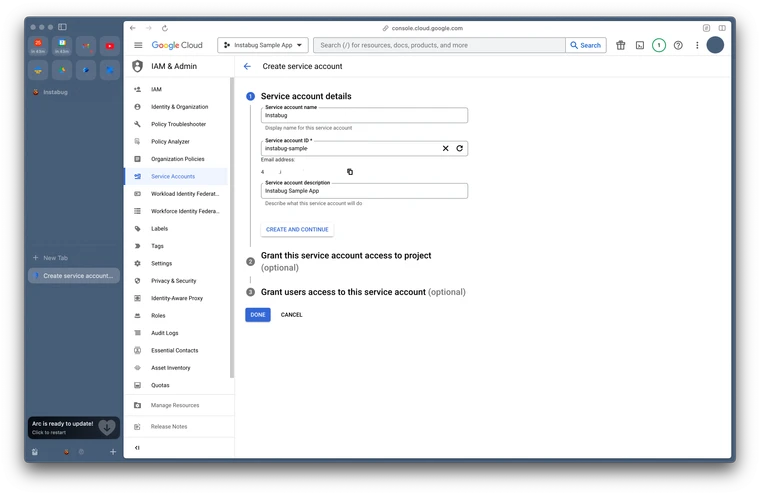 Click "Create service account" and follow the steps.