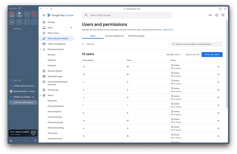 Go to the Users & Permissions page on the Google Play Console.