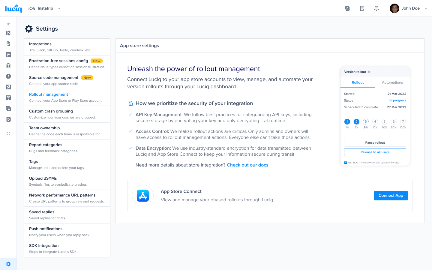Data Encryption: We use industry-standard encryption for data transmitted between Luciq and App Store Connect to keep your information secure during transit.