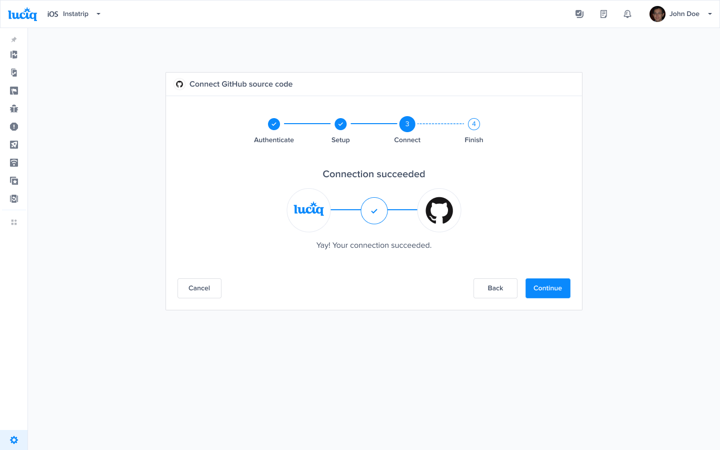 Luciq will begin connecting to your GitHub repository.