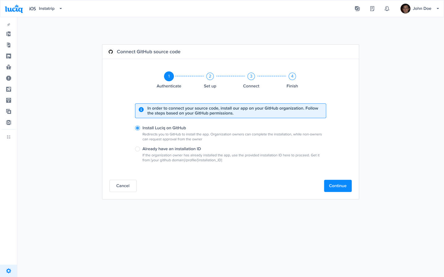 Select "Install Luciq on GitHub."