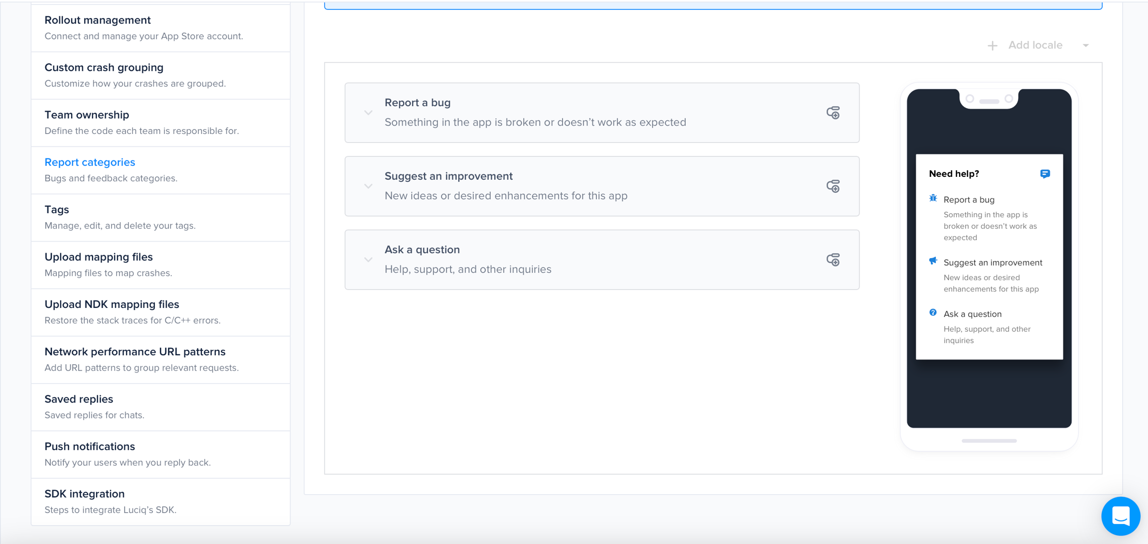 The Report Categories are built specifically to optimize triaging your bug reports on Luciq, help you take faster actions and make faster decisions. It's very easy to set them up, tweak them and change them. Everything can be controlled from your Luciq dashboard without any code changes in your application.