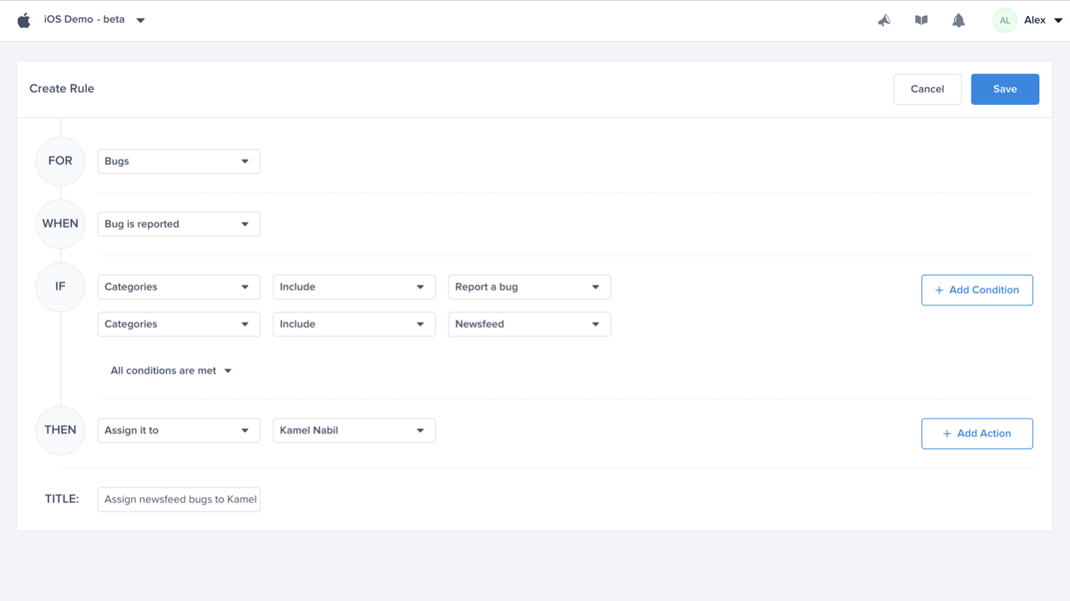 Is your team already used to a specific tracking tool (Jira, Trello, etc..)? You can auto-forward your bug reports to the relevant project depending on the selected category by the user. For example, if you're several teams and each team has an independent Jira project where they track their issues and cards, create a rule that will auto-forward all the reports relevant to each team to their Jira project.