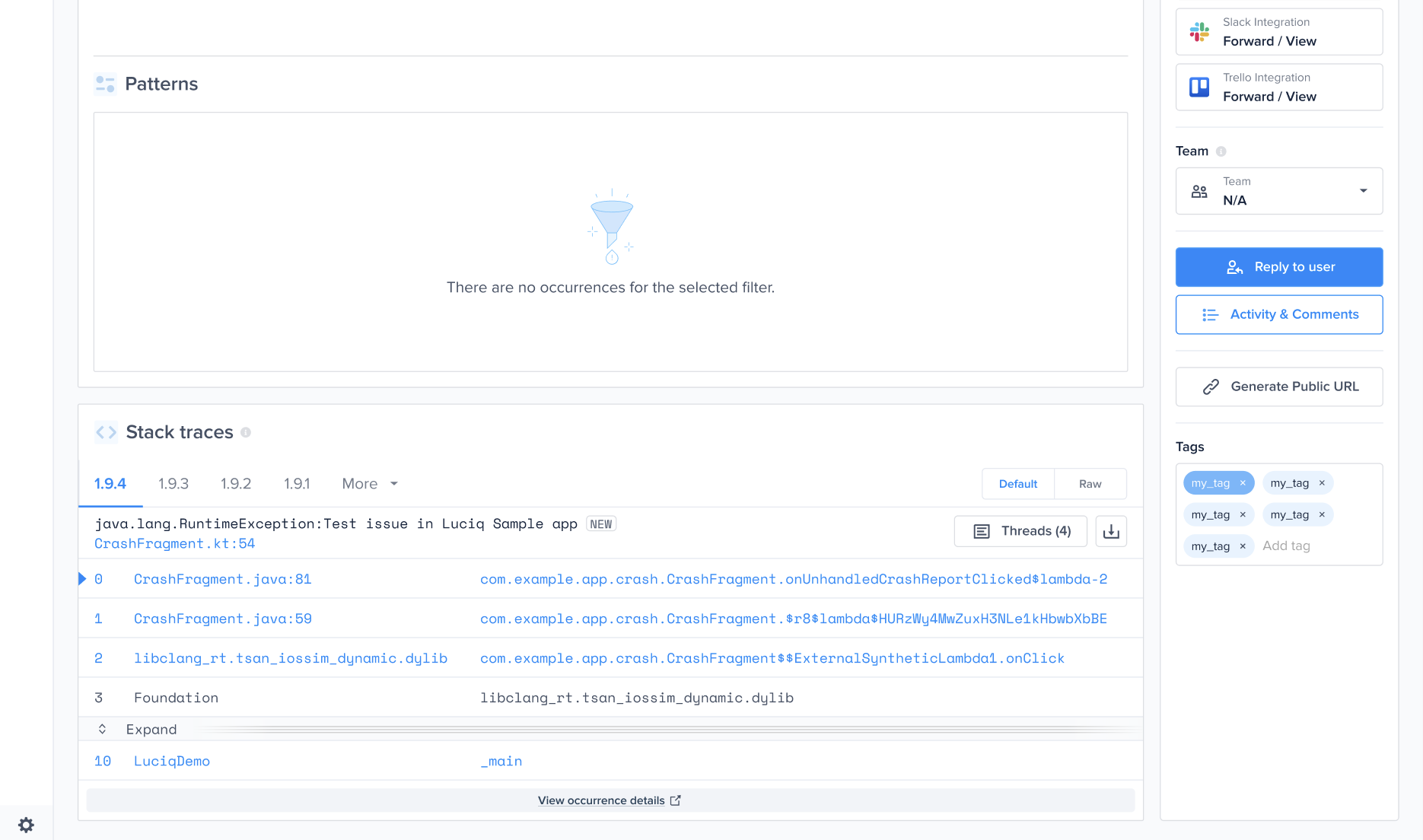 When using Luciq Crash Reporting, each crash report reaches your dashboard with all the information you need to resolve it.