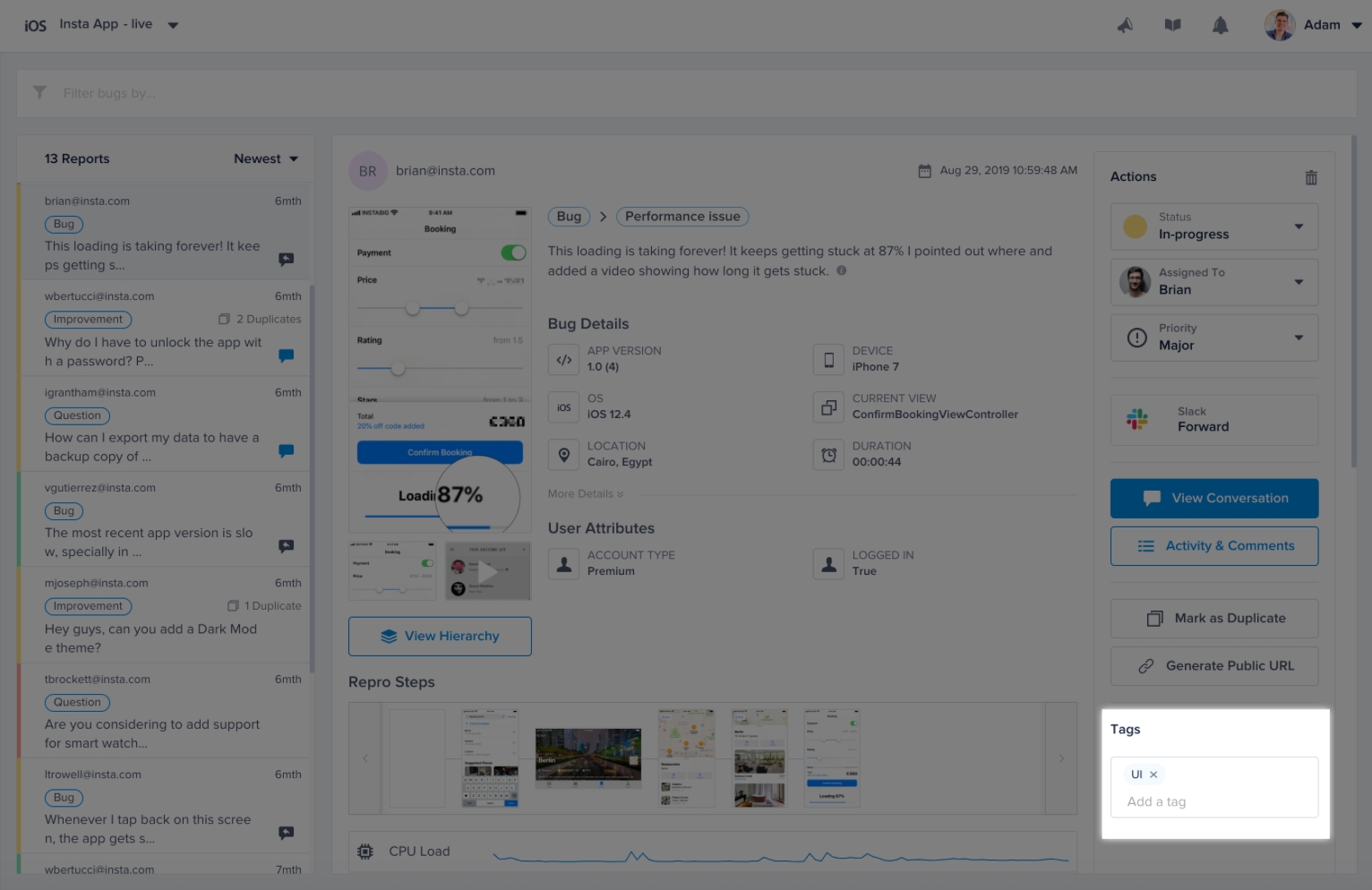 This is where tags appear in your bug reports.