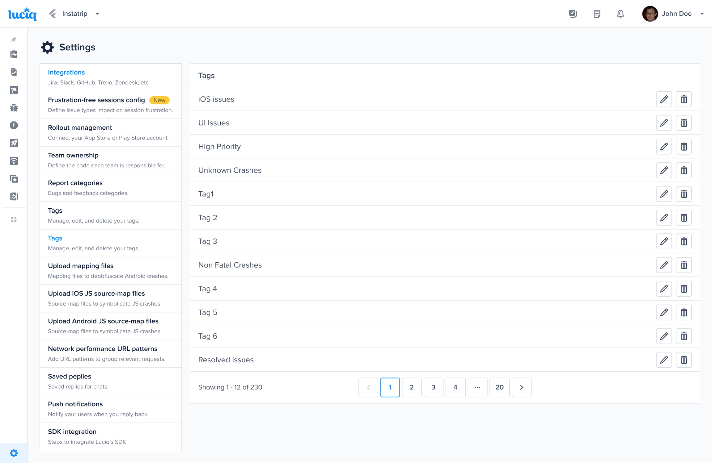 If you'd like to remove a particular tag from your dashboard to prevent it from appearing again when entering a new tag manually, you can do so by navigating to the tags page under the settings options and remove the tag. You can also edit and rename the tag.