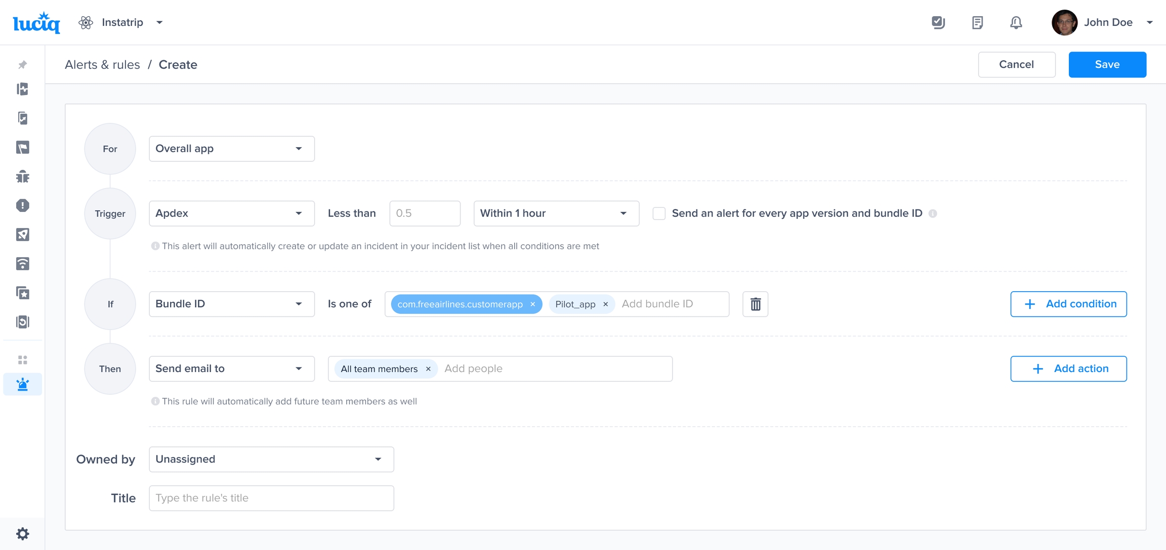 You will see a new condition called bundle-id which enables you to set up alerts on a certain app variant.